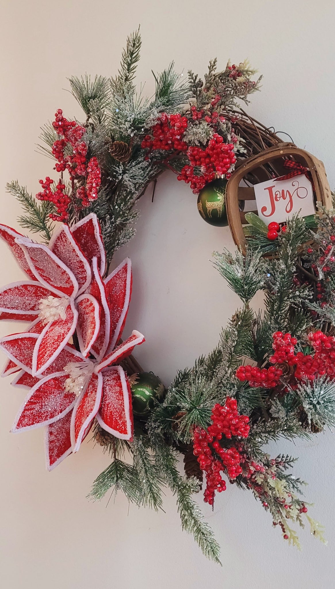 Base – Grapevine wreath which measures at 18" H x 18" W x 2" D