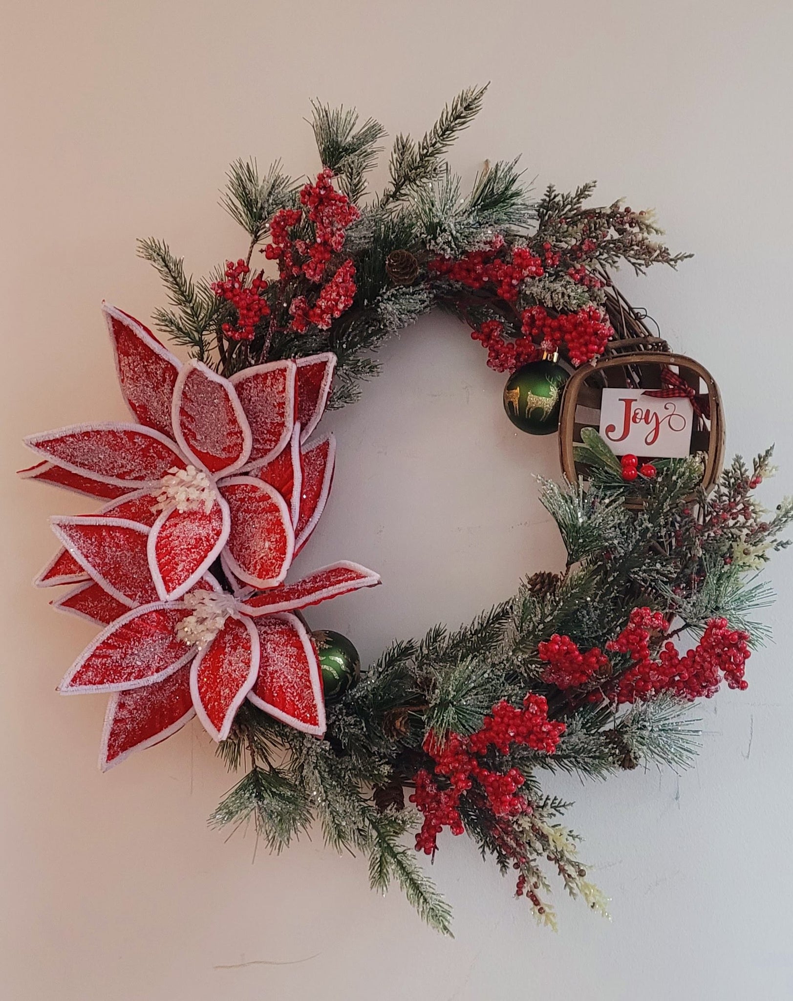 Bring in the holiday season with this beautiful Berry Wreath. The variegated foliage with berry accents makes this piece a great addition to your Christmas home décor. The quality foam and fabric composition is sure to last for seasons to come. The high-grade twig base gives the piece additional color and depth. Display the wreath on your front door or entryway to welcome your guests in style.