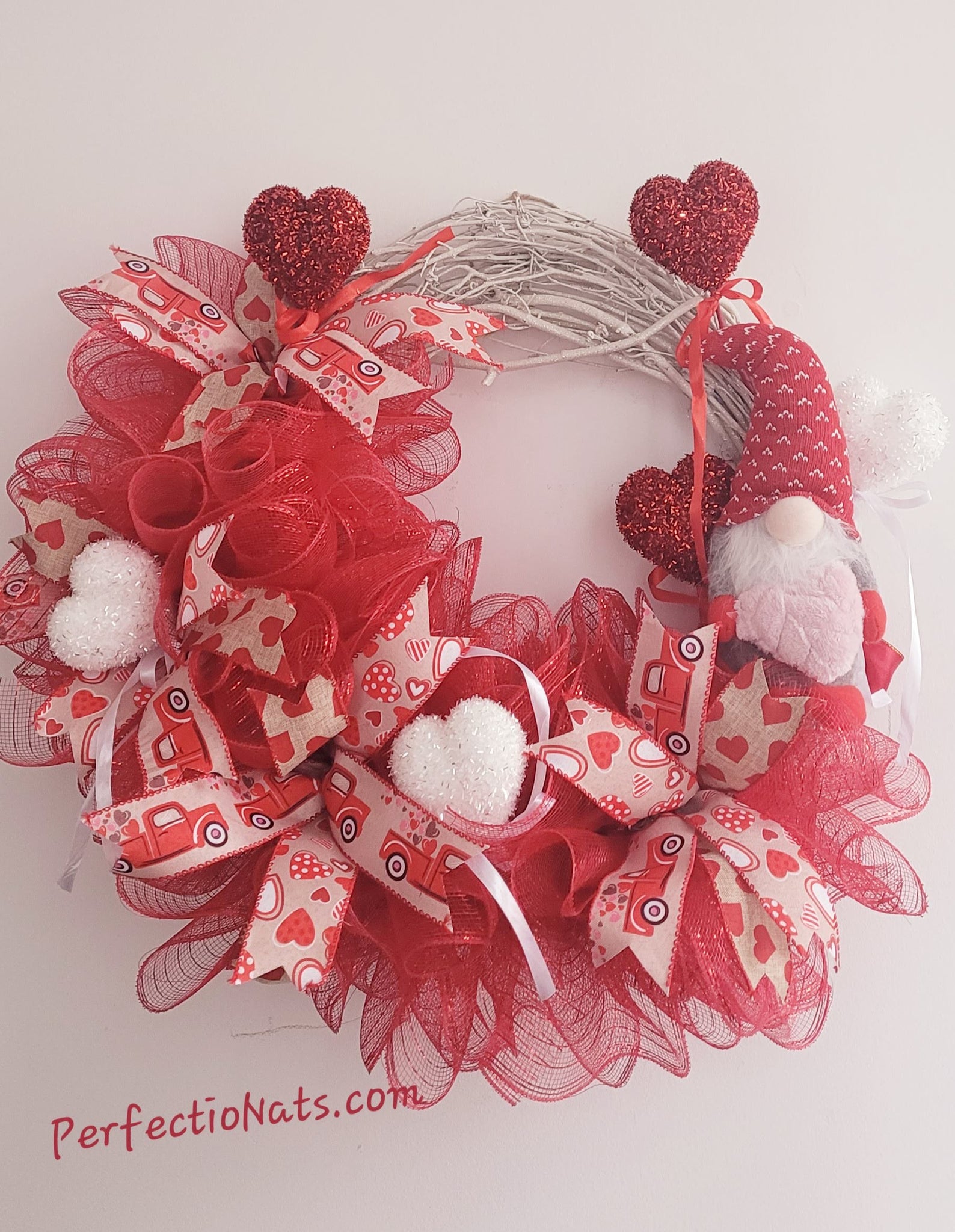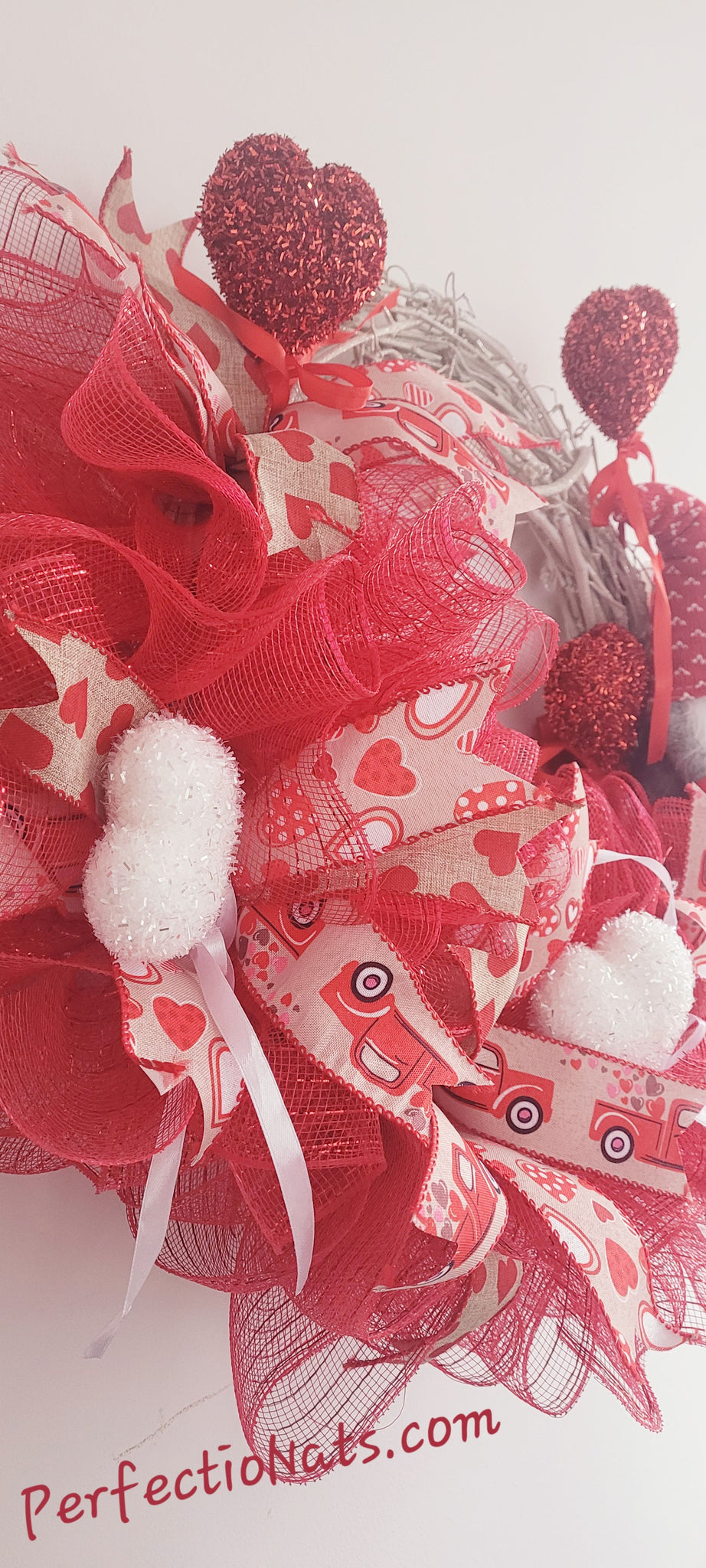 Welcome guests to your home this Valentine's Day with this gorgeous red mesh ribbon wreath! Celebrate St. Valentine's Day and every other day by sending messages of love and affection to partners, family and friends. Adorn your front door or entry way to add a welcoming touch of love to your space.